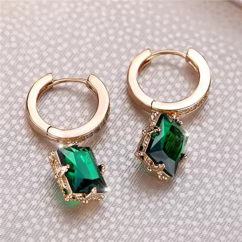 Cute Female Green Zircon Stone Hoop Earring Elegant Gold Color Wedding Jewelry Gift For Women