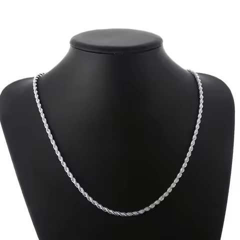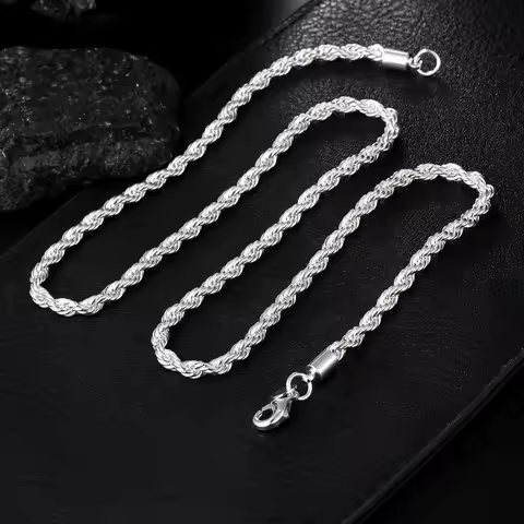 High Quality Silver Color 2MM Women Girls Men Chain Male Twisted Rope Necklace Bracelets Fashion Silver Jewelry Set