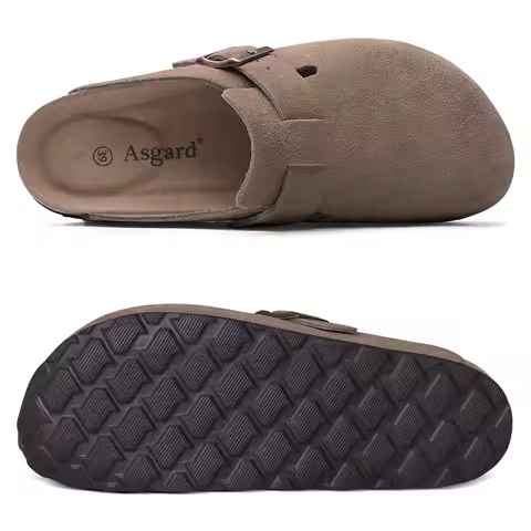 Crestar Women's Suede Clogs Lady Fashion Buckle Leather Mules Comfort Cork Footbed Potato Shoes with Arch Support Beach Sandal