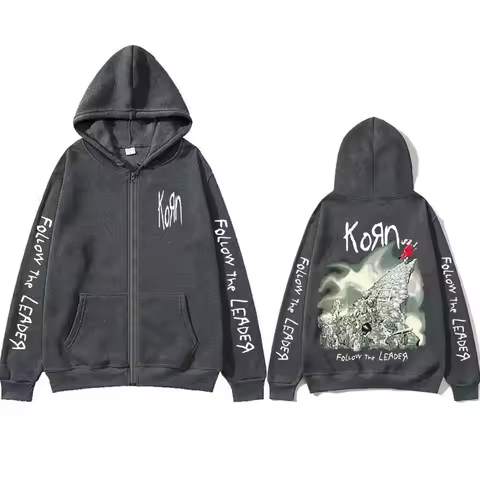Rock Band Korn Follow The Leader Tour 2014 Zipper Hoodie Men Women Retro Gothic Metal Zip Up Jacket Casual Oversized Sweatshirts