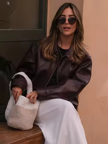 Vintage Wine Red Loose Short Leather Jacket Women Fashion Lapel Long Sleeves Zipper Cropped Coat 2025 Autumn Lady Street Outwear
