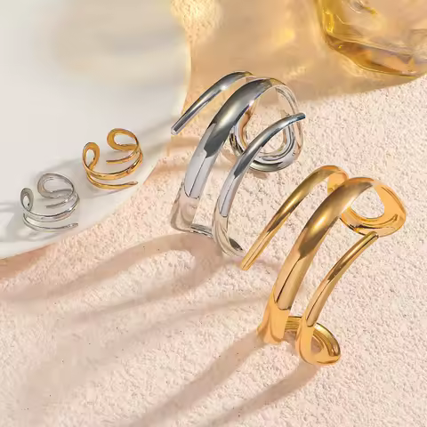 Stainless Steel Irregular Lines Jewelry Set for Women Girls Gold Color Exaggerate Geometric Bracelet Ring Fashion Jewelry Gifts