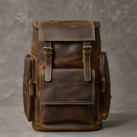 Vintage Crazy Horse Genuine Leather Backpack Men Leather Bagpack Climbing Rucksack male Large Hiking Backpack M814