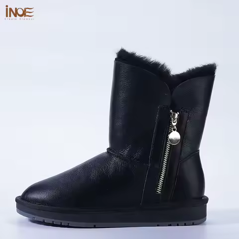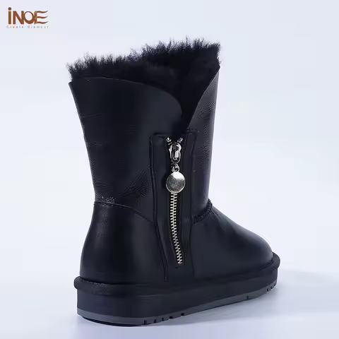 INOE 2025 Style Women Fashion Winter Snow Boots Real Sheepskin Leather Natural Sheep Fur Lined Warm Shoes With Zipper Waterproof
