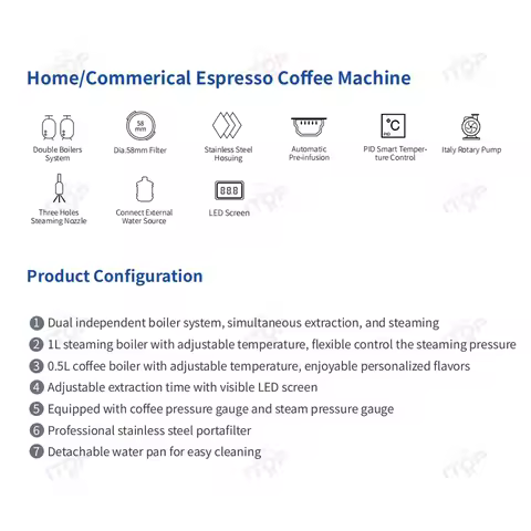 Rotary Pump Coffee Machine Home/commercial Espresso Coffee Maker 0.5L+ 1L Boliers PID Temperture Control Connect External Water