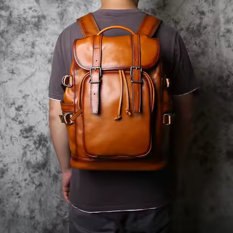 NZP Retro Leather Men's Backpack European and American Fashion Travel Bag Top Layer Cowhide Casual School Bag Laptop Bag