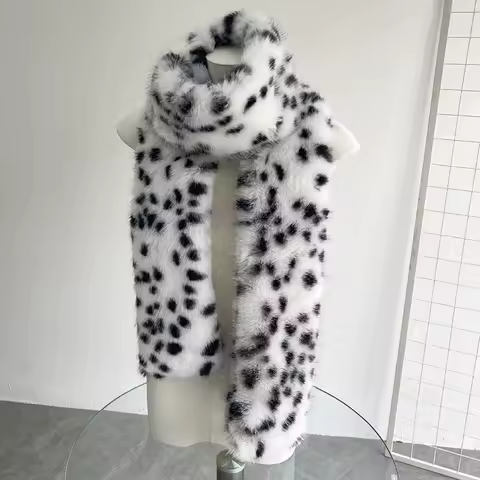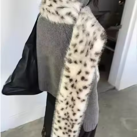 Korea Leopard Print Long Fur Scarfs Warm Plush Scarf Y2K Women Winter Padded Thickened Lengthened Faux Fur Shawl Outdoor RidingK