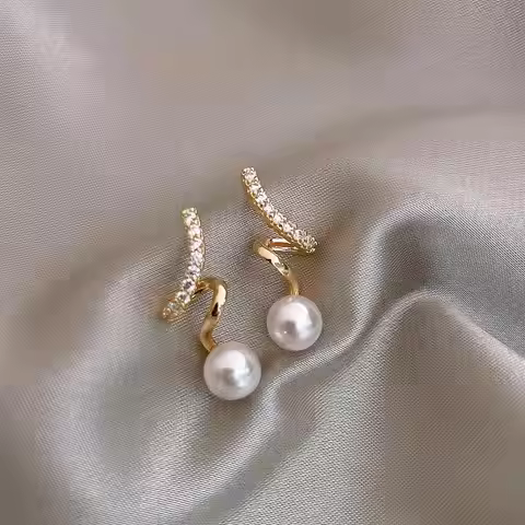 Korean Fashion Rhinestones Pearl Drop Earrings for Women Party Golden Color Irregular Geometry Twist Earrings Statement Jewelry