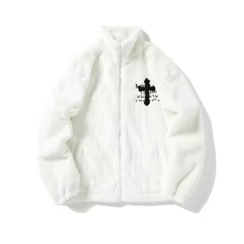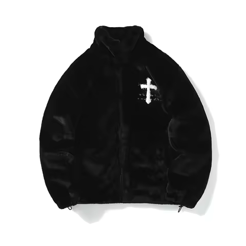 American Style New Hip-hop Embroidered Jacket Men's Imitation Rabbit Fur Stand Up Collar Unisex Loose Cotton Jacket