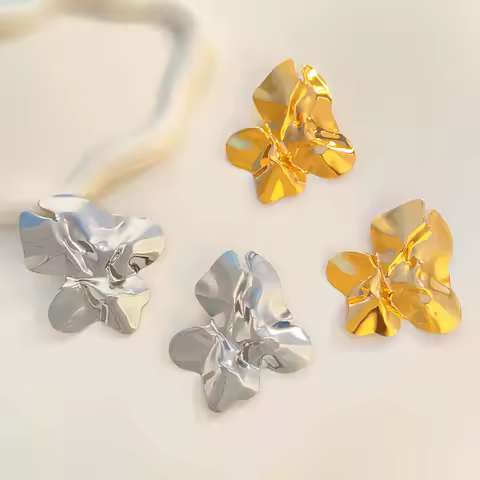 Vintage Metal Irregular Pleated Stud Earrings for Women Exaggerated Gold Color Large Geometric Statement Earrings Party Jewelry