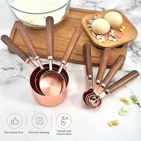 Walnut Wooden Handle Stainless Steel Measuring Cups Spoons Set Kitchen Baking scale Measuring Tools Set Measuring Scoop