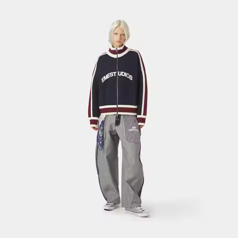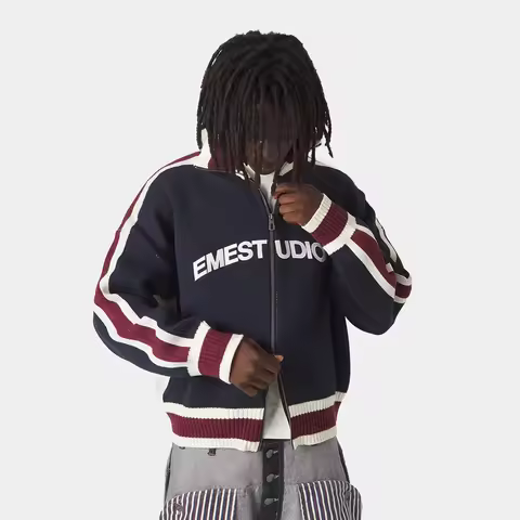 Ins Style Women's Autumn and Winter Personalized Zipper Jacket with Printed Letters Fashionable and Casual Knitted Sweater
