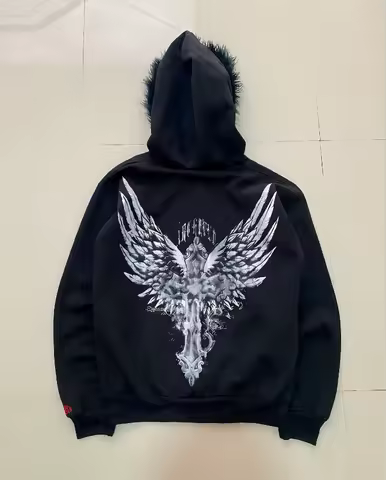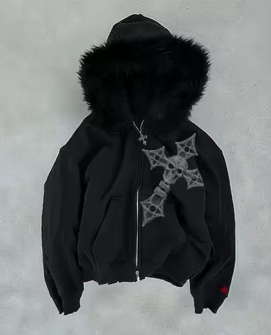 Y2k Street Harajuku Men Autumn Hoodie 2025 New Mao Collar Design Cross Jacket Top Hip Hop Punk Retro Black Couple Sweatshirt