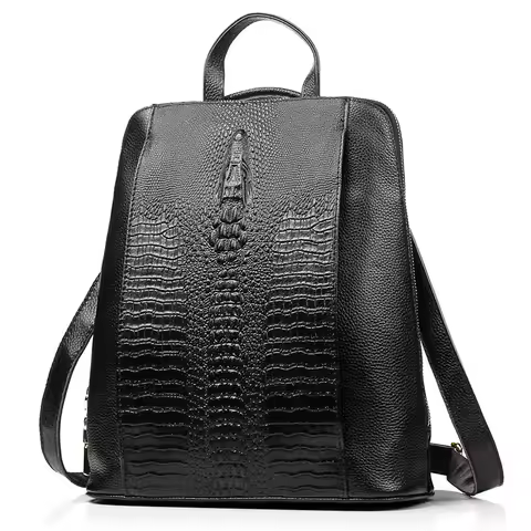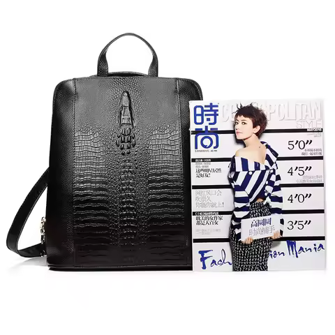 Zency Women's Crocodile Leather Backpack 100% Genuine Natural Travel Work School Bag with Notebook Compartment Laptop Carry-on