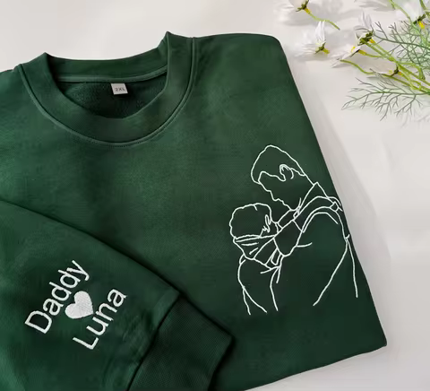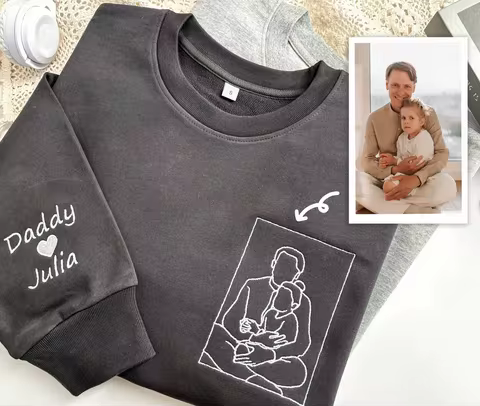 Custom Dad Embroidered Portrait from Photo Sweatshirt,Father's Day Papa Hoodie,Gift for Dad,Gift for Him,Personalized Crewneck