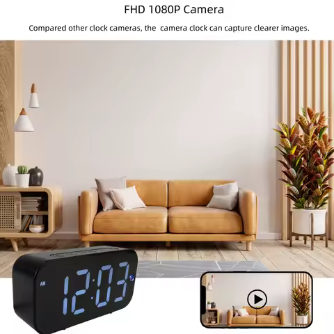 1080P HD WIFI Alarm Clock Camera with Remote Viewing, Motion Detection, Recording, Nanny Cam with 16GB SD Card for Home security