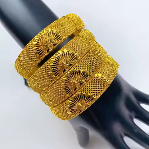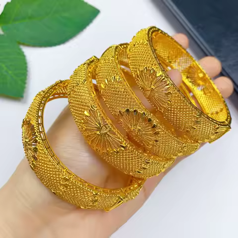 ANIID Fashion Dubai Bridal 24k Gold Color Round Bracelets Bangles Ethiopian Luxury Hand Jewelry for Indian Wedding Party Gifts