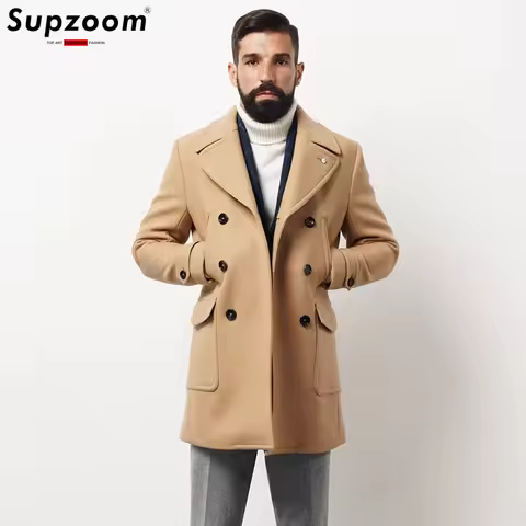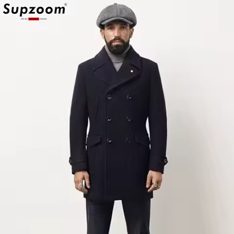 Supzoom 2025 New Arrival Male Popular Clothes Autumn And Winter Thick Casual England Double Breasted Retro Woolen Coat Men