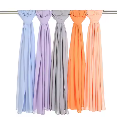 Muslim Chiffon Hijab Women Bubble Chiffon Scarf For Women Ladies Veil Muslim Islam Solid Color Malaysia Musulman Wrap Scarves