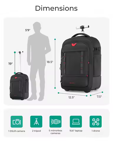 BAGSMART Rolling Camera Bag Photographer Backpack for DSLRs Professional Roller Photo Bags Photographic Rolling Travel Suitcase