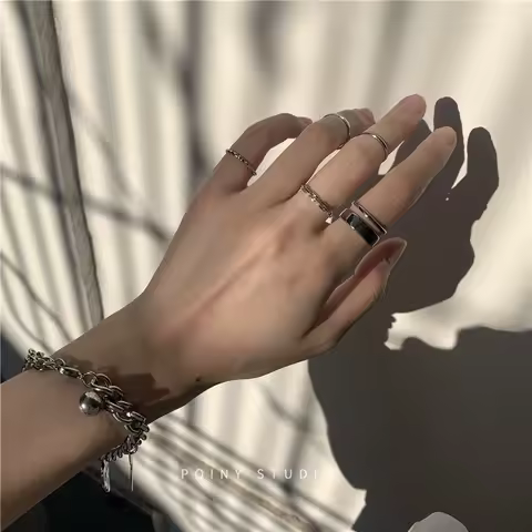 The Tide Cool Ring Set Female Korean Ring Ring Net Red Jewelry Not Fade Color Ring Cold Wind Hip Hop Index Finger Ring