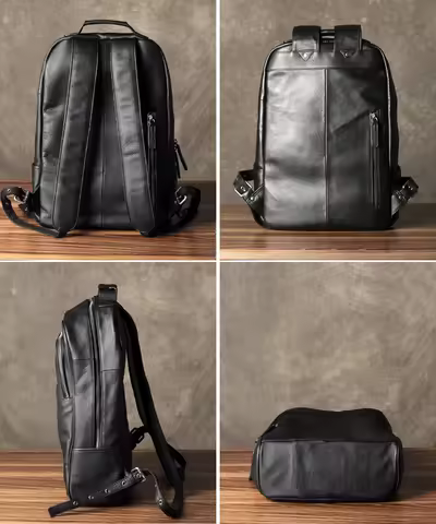High Quality Fashion Genuine Leather Backpack Men Bagpack Student School Bag Backpack daily male Rucksack large Knapsack Black