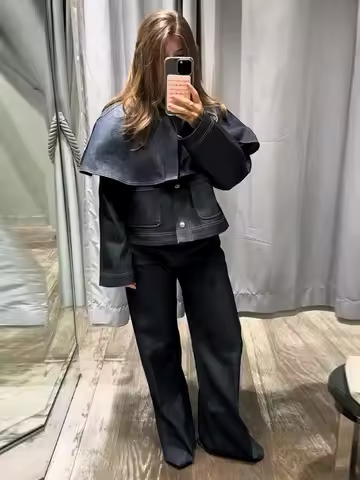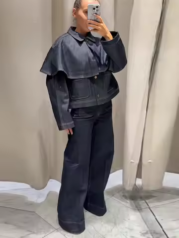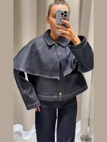 Chic Women's Jacket Turn-down Collar Full Sleeve Single Breasted Denim Female Jackets 2025 Autumn Clock Fashion Lady Outwears