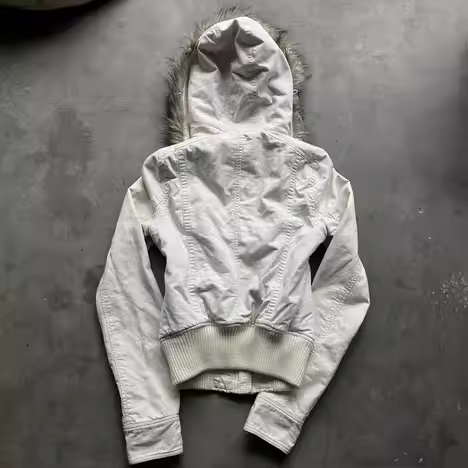 Gothic Y2K Vintage Fur Lined Hooded Jacket Womens White Button Zipper Coat with Faux Fur Trim Fashion Casual Warm Coats