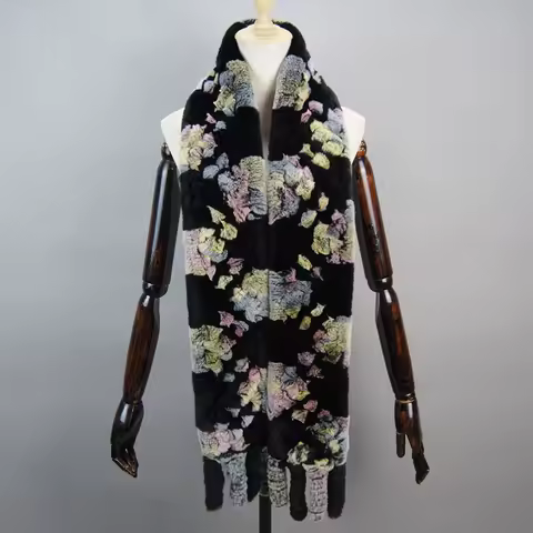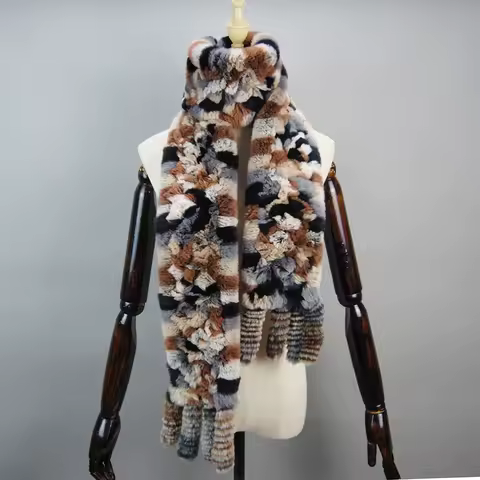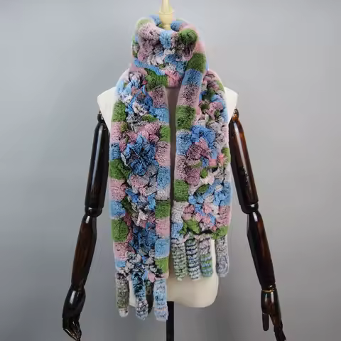 Long Style Women Winter Real Rex Rabbit Fur Scarf Warm Fluffy Natural Rex Rabbit Fur Scarf Ladies Knitted Rex Rabbit Fur Scarves