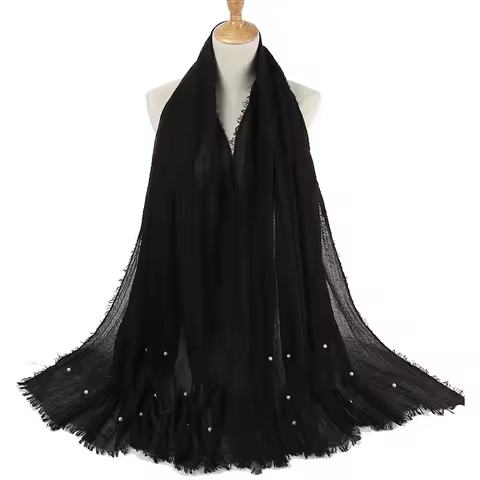 Plain Crinkled Cotton Muslim Hijab Scarf Women Ladies Scarfs Shawls Head Wrap Pearl Beads Head Scarves Soft Muffler Stole