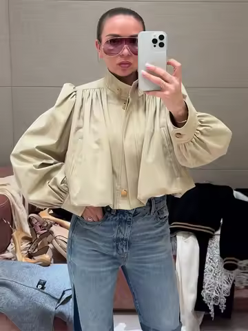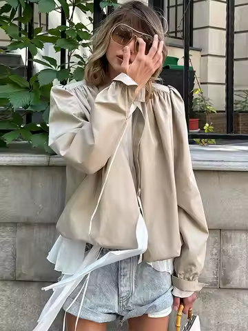 Pleated Solid Women Coat Full Sleeve Single Breasted Loose Long Sleeve Lady Jacket 2025 Autumn Lapel Female Highstreet Tops