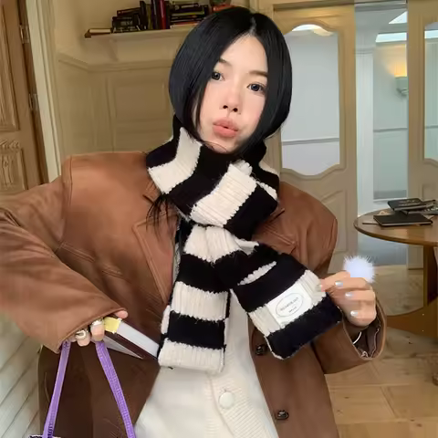 Red Stripe Soft Wool Knitted Scarf Women Winter Korean Thick Warm Scarf Fashion Y2K Harajuku Scarf Shawl Christmas New Year Gift