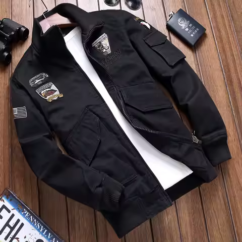 Men Military Windbreaker Casual Army Pilot Coat Autumn Spring Baseball Jacket Bomber Cargo Jacket Outerwear Coats Clothing