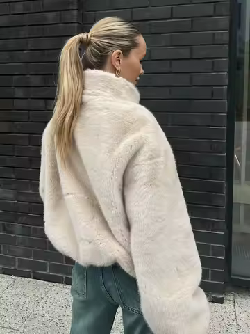 Bornladies New Women's Faux Fur Jacket Zipper Warm Plush Coat Oversized Soft Fluffy Stand Up Collar Autumn Winter Casual Jacket
