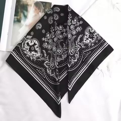 Women Scarf 70cm Black Hip Hop Bandana Kerchief Paisley Printed Hijab Headwear Wrist Hairwrap Square Scarves Print Handkerchief