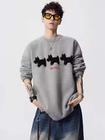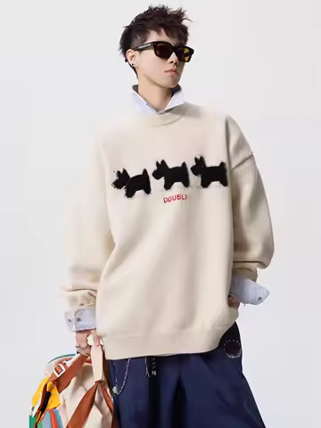 Winter Cartoon Dog Knitted Sweaters For Men Y2K Vintage Pullovers Knitwear Women Casuals Jumpers Streetwear Knit Sweater Couple