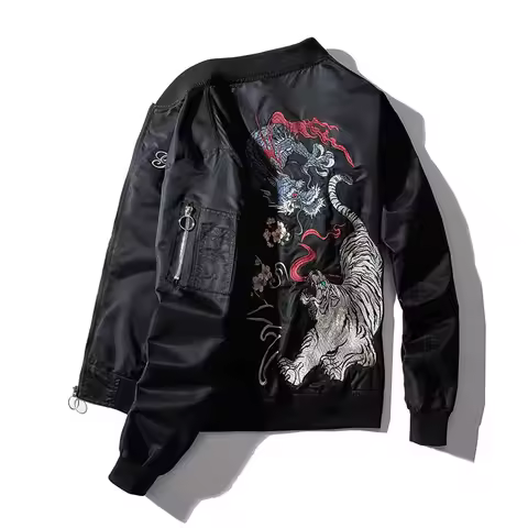 Embroidery Mens Bomber Jacket Dragon Tiger Autumn Winter Pilot Jacket Men Hip Hop Japanese Baseball Youth Jacket Streetwear Male