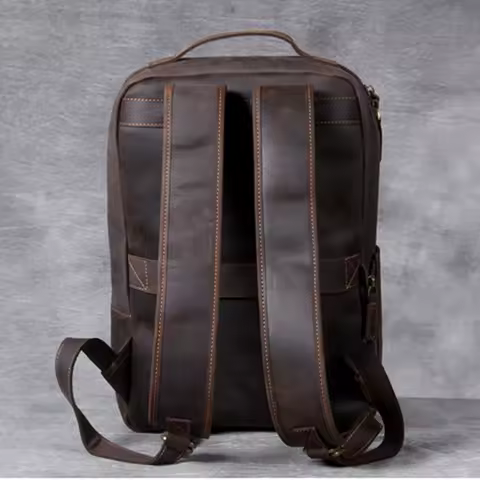 Vintage Crazy Horse Genuine Leather Backpack Men Backpack Laptop Leather Daily Bagpack Male Rucksack Trave Hiking Knapsack Large