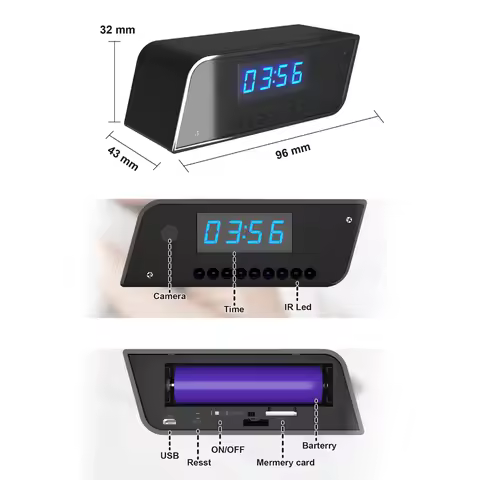 1080P full HD mini clock camera, wireless WiFi, night vision, motion detection, home security monitoring