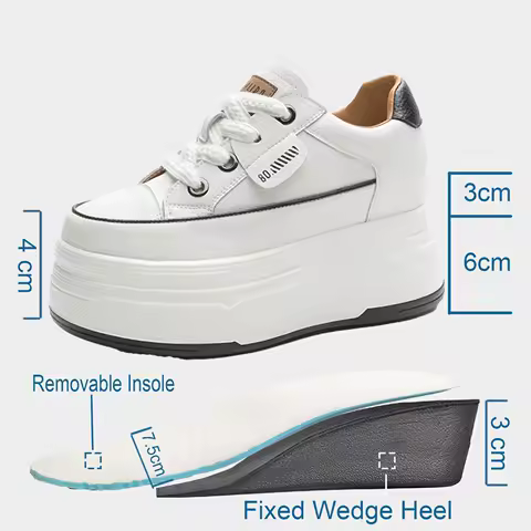 Fujin 9cm 3 inch comfortable platform sneakers for women Genuine Leather Women Vulcanized Shoes Platform High Heels Casual Shoes