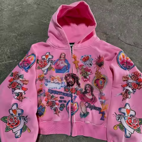 2025 Street Casual Clothing Retro Pattern Printed Hoodie Loose Temperament Men's Hoodie Gothic Rock Fashion Sports Hoodie