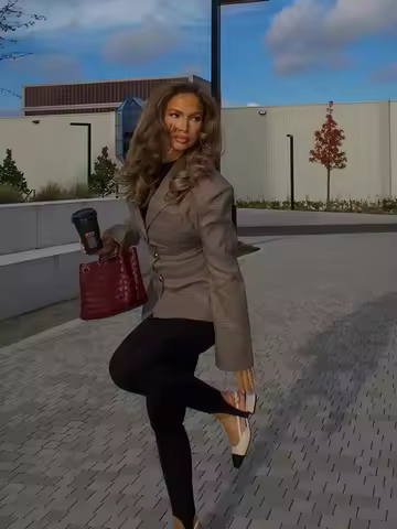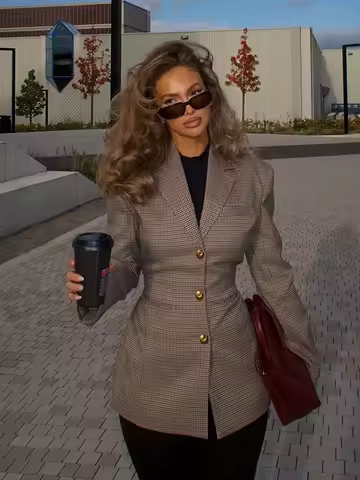 Fashion Plaid Women Suit Lapel Single Breasted Slim Ffit Jacket Suit High Street Pocket Coat 2024 New Lady Commuter Streetwears