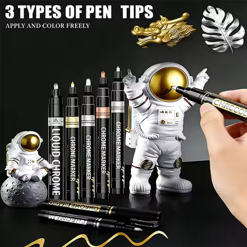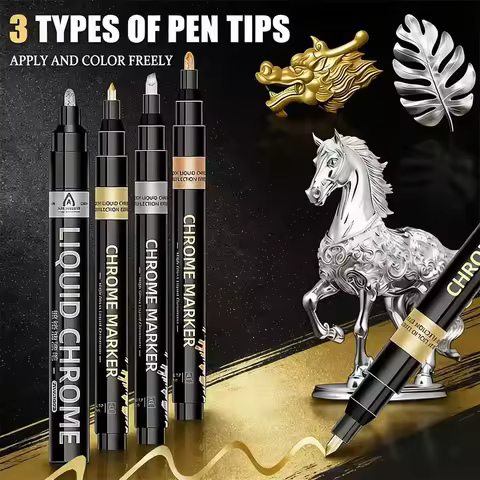 1/2pcs chrome-plated marker mirror metal waterproof complementary color repair model DIY hand-painted gold silver Copper