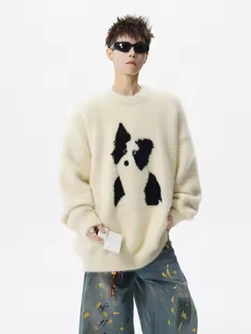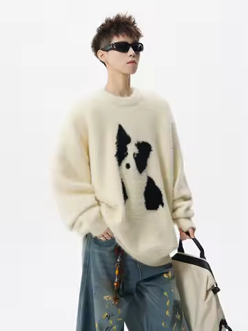 Faionable Knitwear Men Y2k Oversize Dog Head Round Neck Sweater 2026 New Autumn and Winter Warm Knitted Border Collie Sweaters
