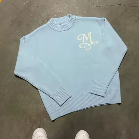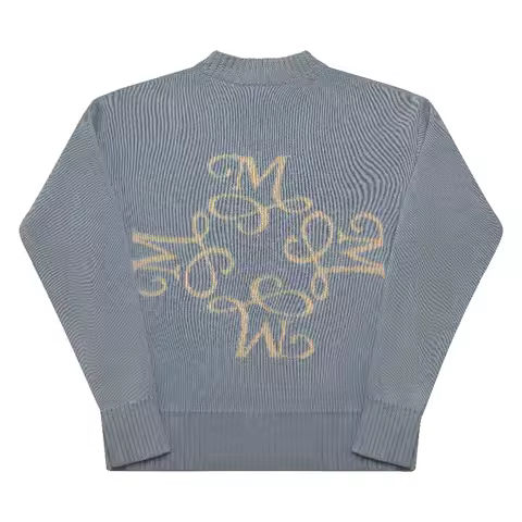 Y2K Korean Retro Long-sleeved Sweater Signature M Logo Pattern Pullover Nen's New Fashion High Street Casual Wear Boxy Knit Top