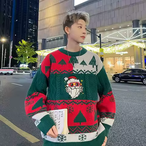 New Retro Christmas Tree Style Sweater For Men And Women In Autumn And Winter With Loose High Neck And Velvet Padded Sweater Top
