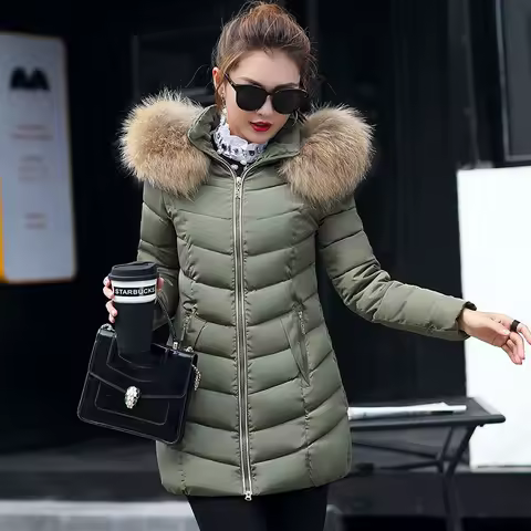 2025 New Women Parkas Big Fur Winter Parkas Hooded Long Down Cotton Jacket Female Coat Thick Warm Winter