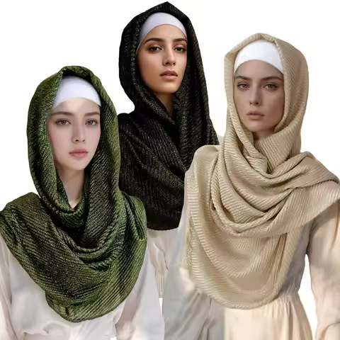2025 Abaya Women Veil Gold Solid Color Muslim Head Scarf Shawls and Wraps Glitter Pashmina Bandana Female Foulard Hijab