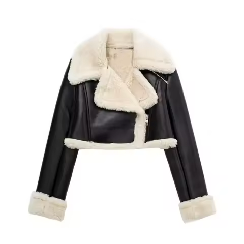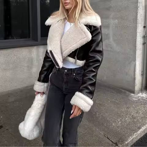 2025 New Winter Fur-And-Textile One-Piece Short Street Chic Motorcycle Jacket