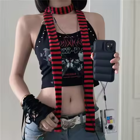 2024 Women Harajuku Cotton Scarves Y2k Black Grey Stripe Long Scarves 180cm Thin Long Decorative Neckerchief Fashion Streetwear